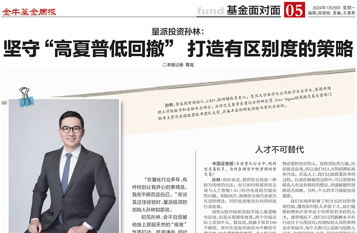 中国量化正在踏上国际舞台!量派投资孙林:坚守稳健初心,加大AI探索应用